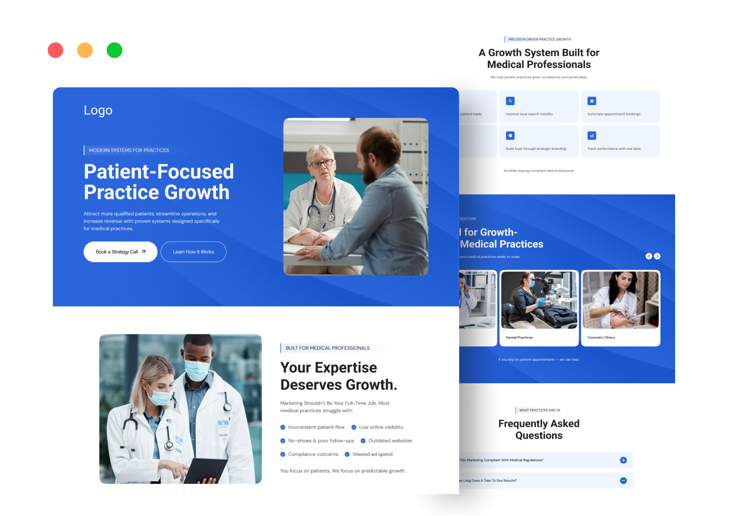 Patient intake forms, appointment requests, reminders, follow-ups, reputation management.